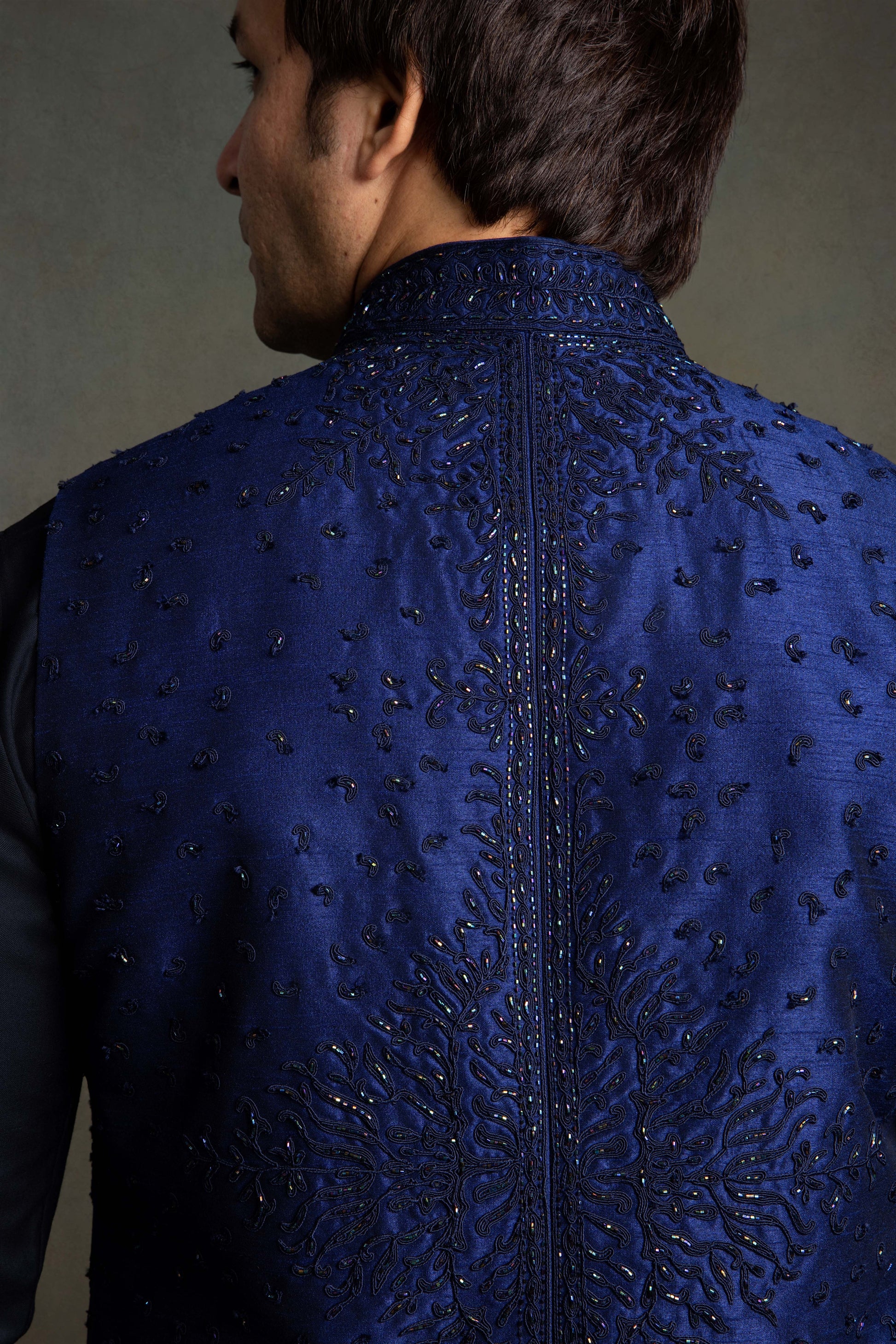 NAVY BLUE DORI EMBROIDERY NEHRU JACKET SET