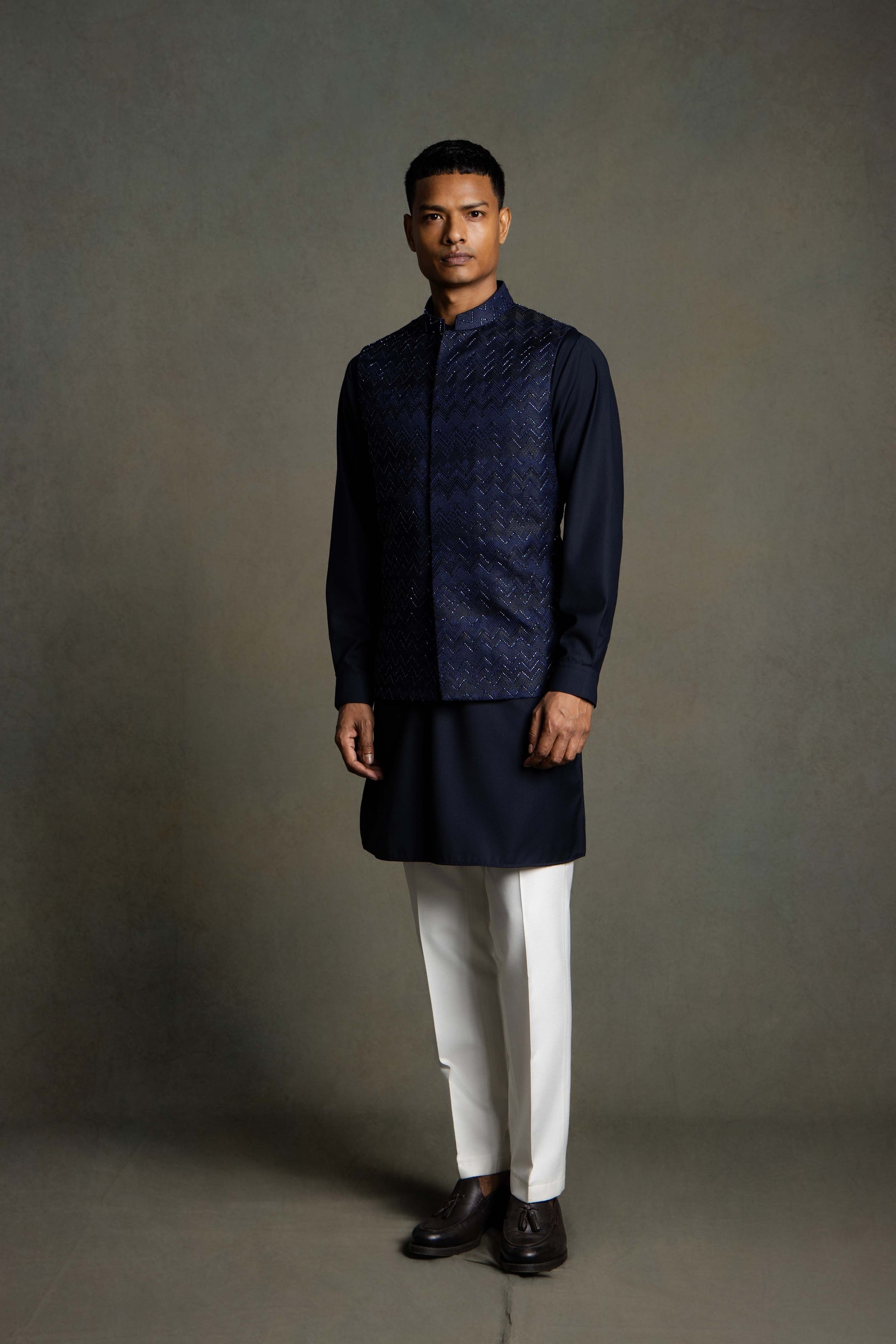 JAQUARD GEOMATRI EMBROIDERY GLASS NEHRU JACKET SET