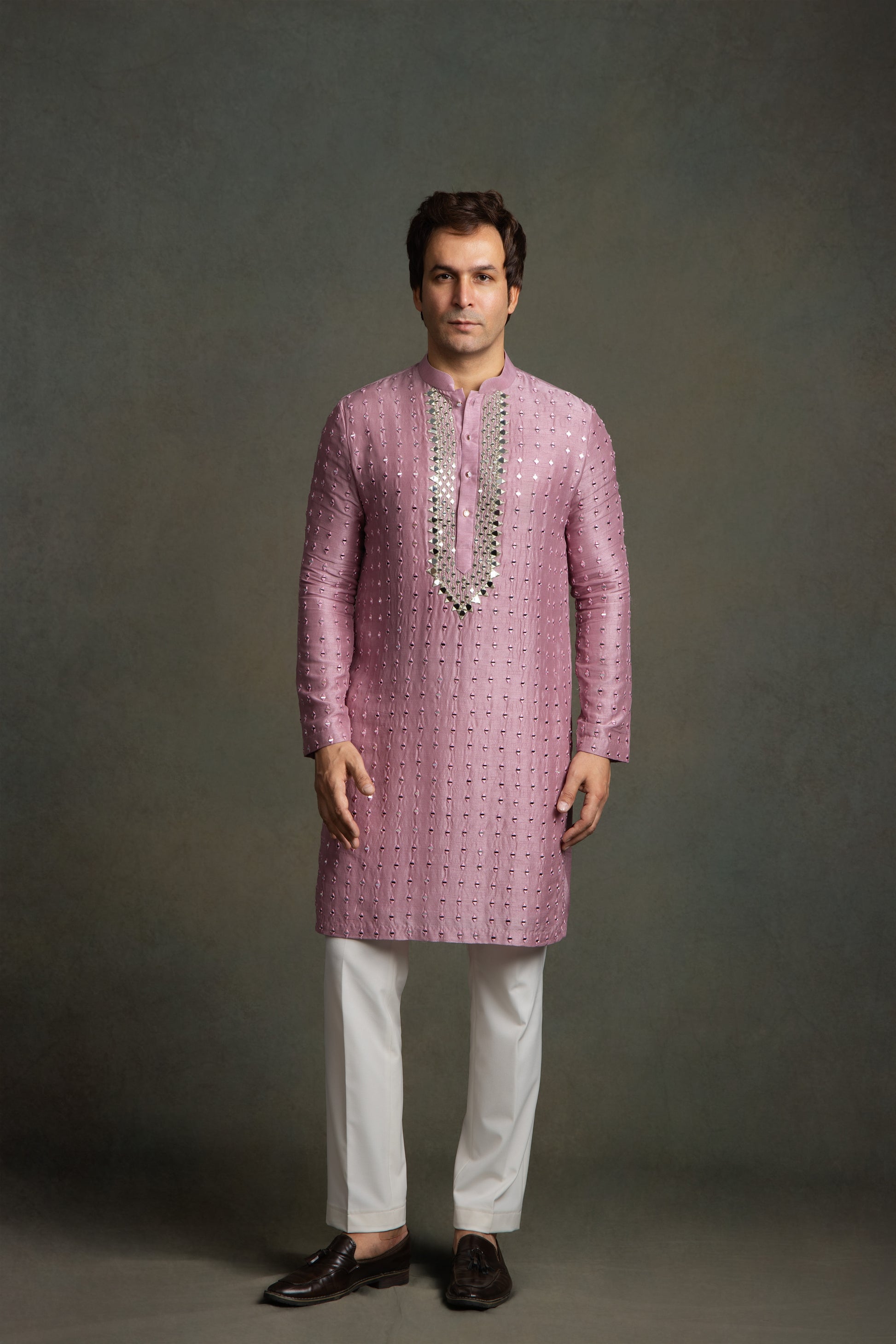 MIRROR GOLDEN THREAD EMBROIDERY KURTA AND OFF WHITE PANT
