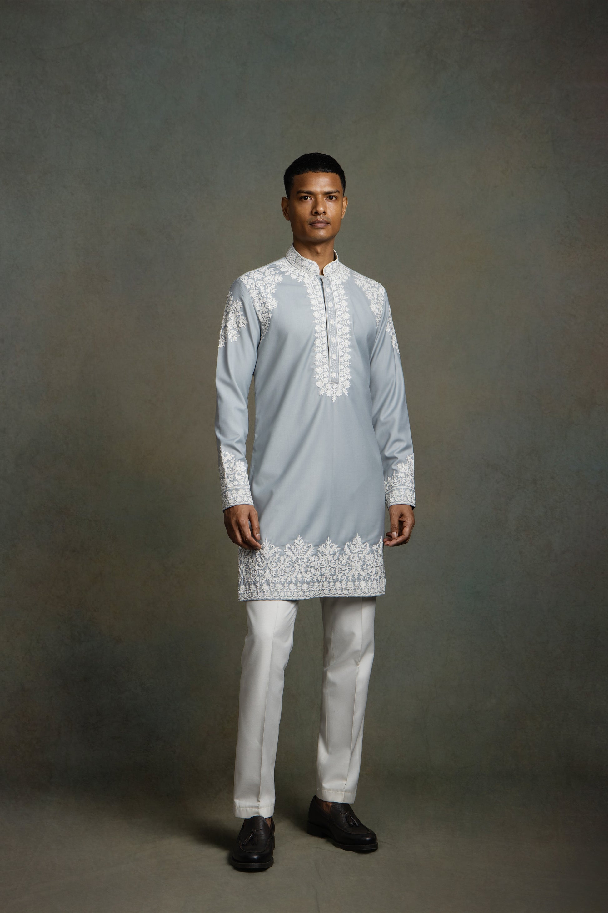 THREAD EMBROIDERY KURTA WITH OFF WHITE COTTON SILK PANT