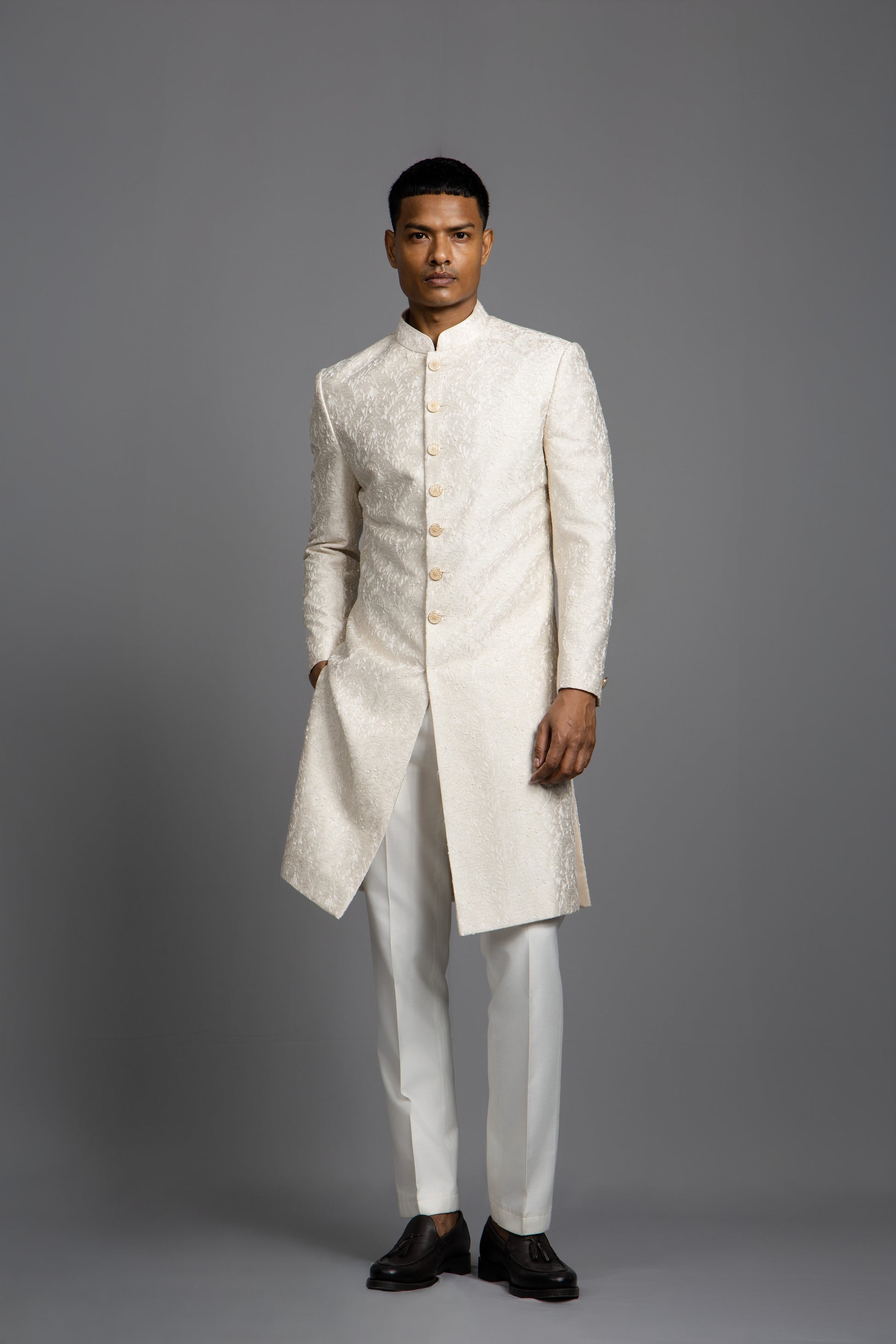 IVORY FLORAL EMBROIDERY SHERWANI SET