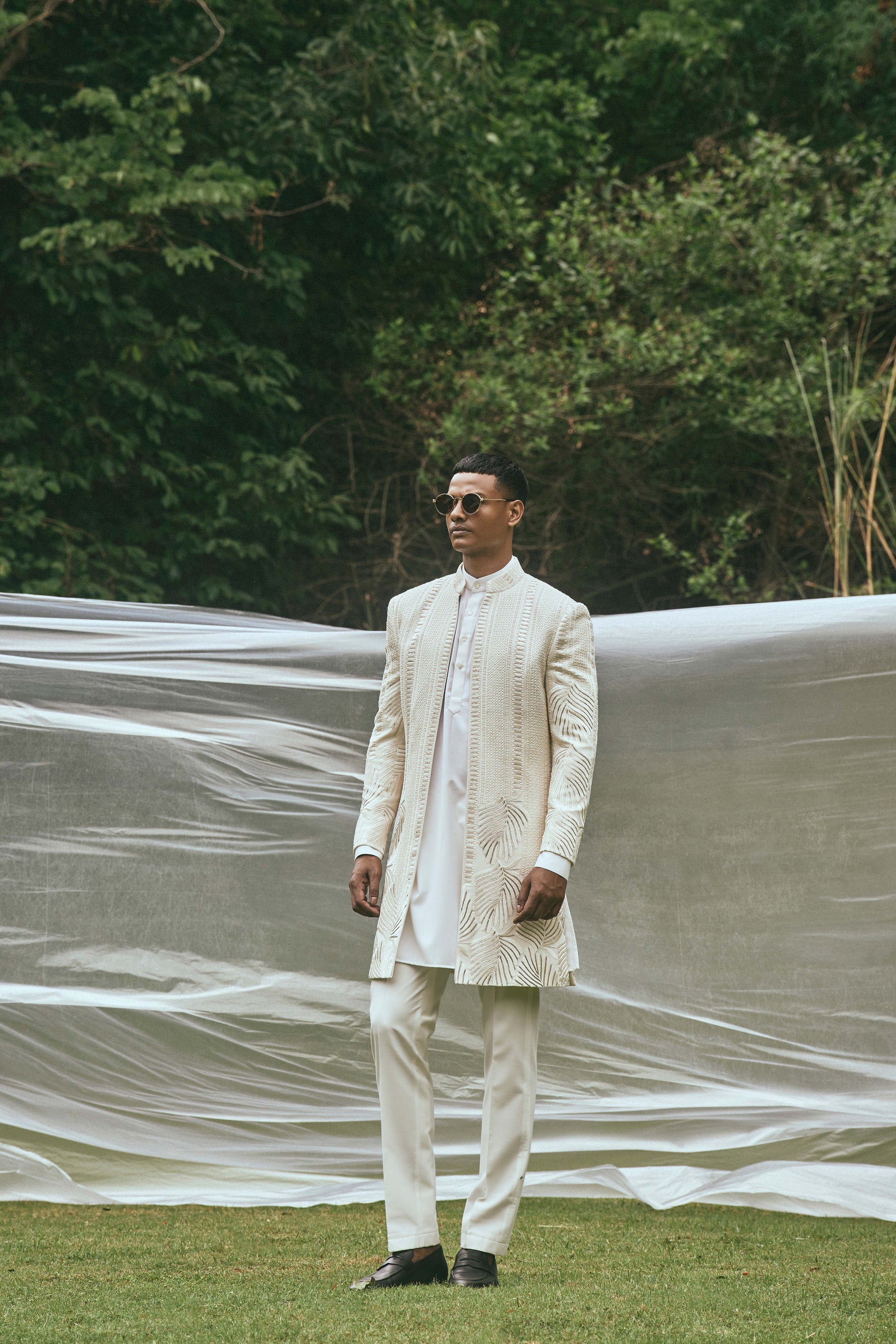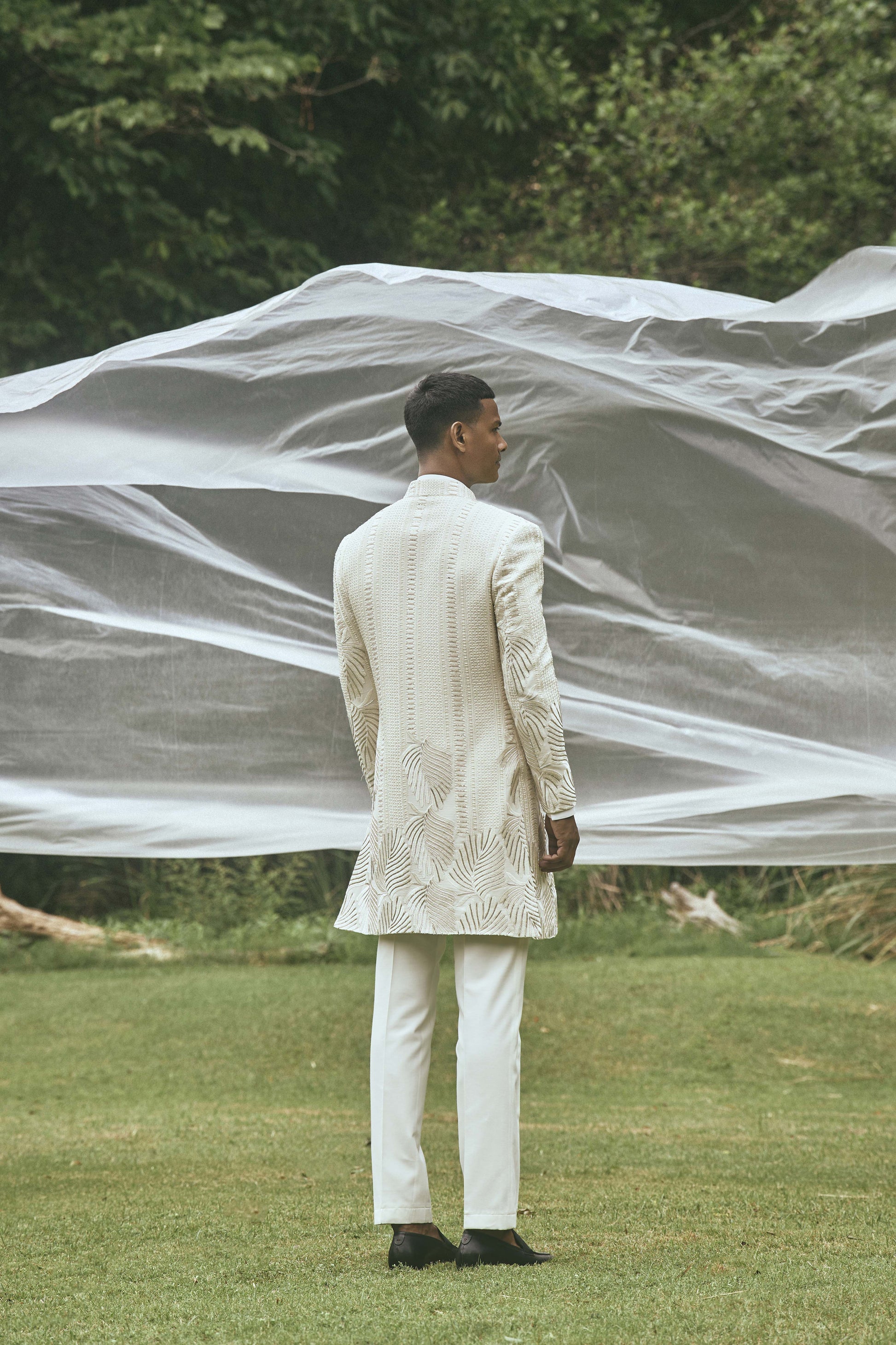 IVORY THREAD EMBROIDERY WITH GLASS CUT OPEN INDOWESTERN